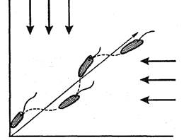 Уже на примерах кинезов мы видели, что градиенты внешних раздражителей выступают у простейших одновременно как пусковые и направляющие стимулы. Особенно наглядноэто проявляется при клинокинезах. Однако изменения положения животного в пространстве еще не являются здесь подлинно ориентирующими, поскольку они носят ненаправленный характер. Для достижения полного биологического эффекта клинокинетические, как и ортокинетические, движения нуждаются в дополнительной коррекции, позволяющей животному более адекватно ориентироваться в окружающей его среде по источникам раздражения, а не только менять характер движения при неблагоприятных условиях. Ориентирующими элементами являются у представителей рассматриваемого типа и у других низших беспозвоночных, стоящих на данном уровне психического развития, простейшие таксисы. В ортокинезах ориентирующий компонент — ортотаксис — проявляется в изменении скорости