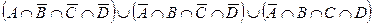| Завдання № 1.2.2. Накреслити діаграму Ейлера-Венна для чотирьох множин А, В, С, D, які утворюють множину F, і позначити штриховкою її область (див. табл. 1.3.).