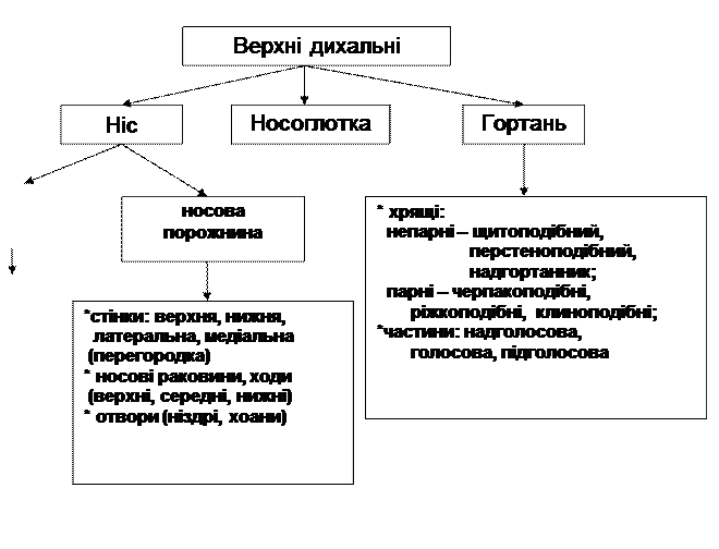 Вміти: - визначати відділи верхніх дихальних шляхів, їхню скелетотопію.