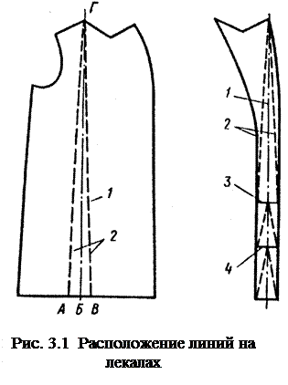 Харьков Лабораторная работа 3.1 СПОСОБЫ РАСКЛАДЫВАНИЯ ЛЕКАЛ Цель работы Ознакомление с техническими условиями раскладывания лекал и освоение способов раскладывания. Содержание работы 1. Ознакомление с общими техническими условиями на выполнение раскладки лекал, раскрой и детали кроя. 2. Выполнение раскладок лекал (одно- и многокомплектных) при различных способах настилания полотна. 3. Определение экономичности раскладки и выявление факторов, влияющих на межлекальные отходы. ОБЩИЕ СВЕДЕНИЯ В швейной промышленности в условиях массового поточного механизированного производства особое внимание уделяется качеству изготовления деталей изделий. На качество деталей кроя влияют точность изготовления лекал и точность их обводки в раскладке, направление в деталях основных и уточных нитей, рисунка и ворса материалов, способов раскроя и т. д. Лекало – деталь кроя, изображенная на плотном материале, используемая в качестве шаблона при изготовлении раскладок лекал и раскрое изделия [4]. Для выполнения раскладок лекал и проверки кроя изготавливают рабочие лекала из плотного картона толщиной от 0, 9 до 1, 62 мм.