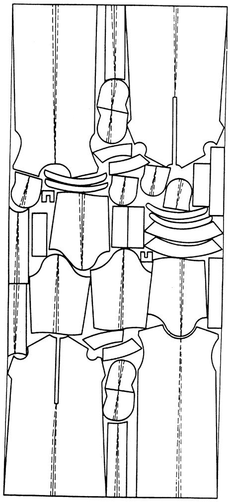 Примечание. 1-12 – двухкомплектные раскладки, способ настилания «лицом к лицу»; 13-14 – однокомплектные раскладки, способ настилания «лицом вниз»