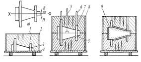 Литье по выплавляемым моделям – это: 1) способ получения фасонных отливок из металлических сплавов в неразъемной оболочковой форме, рабочая полость которой образована удалением литейной модели выжиганием, растворением или выплавлением в горячей воде; 2) способ получения фасонных отливок в металлических формах; 3) способ получения отливок свободной заливкой расплава в разовую литейную форму, изготовленную из двух скрепленных рельефных полуформ из смеси, состоящей из мелкого кварцевого песка и крепителя – феноло-формальдегидной порошкообразной термореактивной смолы; 4) способ получения отливок, как правило, в металлических формах (изложницах), при котором расплавленный металл, под действием центробежных сил отбрасывается к стенкам формы и затвердевает, образуя отливку.
