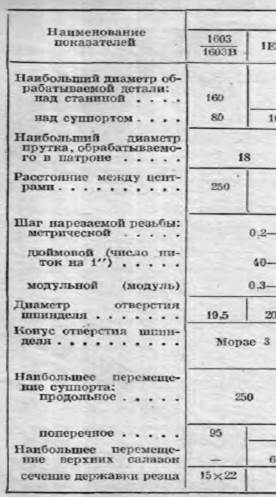 Наибольший диаметр обрабатываемой детали: над станиной.... над суппортом.... Наибольший диаметр прутка, обрабатываемого о патроне..... Расстоште между центрами.... •..... Шаг нарезаемой резьбы: дюймовой (число ни- модульной (модуль) Диаметр отверстия