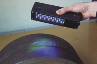 - яркостный, основанный на регистрации контраста в видимом излучении ахроматического рисунка на фоне поверхности объекта контроля. Комбинированные методы капиллярного неразрушающего контроля сочетают два или более различных по физической сущности методов неразрушающего контроля, один из которых обязательно жидкостный. Капиллярно-электростатический метод основан на обнаружении индикаторного рисунка, образованного скоплением электрически заряженных частиц у поверхностной или сквозной несплошности неэлектропроводящего объекта, заполненного ионогенным пенетрантом. Капиллярно-электроиндуктивный метод основан на электроиндуктивном обнаружении электропроводящего индикаторного пенетранта в поверхностных и сквозных несплошностях неэлектропроводящего объекта. Капиллярно-магнитопорошковый метод основан на обнаружении комплексного индикаторного рисунка, образованного пенетрантом и ферромагнитным порошком, при контроле намагниченного объекта. Жидкостный капиллярно-радиационный метод излучения основан на регистрации ионизирующего излучения соответствующего пенетранта в поверхностных и сквозных несплошностях, а капиллярно-радиационный метод поглощения — на регистрации поглощения ионизирующего излучения соответствующим пенетрантом в поверхностных и сквозных несплошностях объекта контроля.