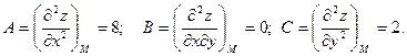 Найдем значения частных производных в точке М: