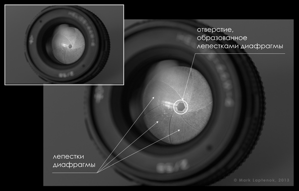 Рис. 1. Диафрагма. Из соотношения выше следует, что а) значение диафрагмы – безразмерное число, б) чем больше значение диафрагмы, тем меньше диаметр отверстия: