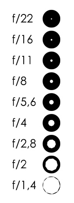 Законы природы таковы, что количество света, проходящее через отверстие заданного диаметра, и диаметр отверстия связаны квадратичной зависимостью. Другими словами, количество света, проходящее через отверстие заданного диаметра, изменится в 4 раза, если диаметр отверстия изменится примерно в 2 раза; в 2 раза, если диаметр изменится в «квадратный корень из 2» раз (примерно в 1, 4 раза). Пример. Через отверстие диаметром 10 мм проходит свет равный по интенсивности свету одной бытовой свечи. Я изменил диаметр отверстия примерно в 1, 4 раза, диаметр отверстия стал равным 14 мм. Теперь через отверстие проходит свет равный по интенсивности свету двух бытовых свеч. Я снова увеличил диаметр отверстия в 1, 4 раза, диаметр отверстия стал равным примерно 20 мм (точно 19, 6 мм). Интенсивность света, проходящего через отверстие, стала равной свету четырёх бытовых свечей. Обращаю внимание, в примере выше, чтобы изменять поток света, проходящий через объектив вдвое, необходимо вычислять дробное (нецелое) число. Вычислять его быстро в уме не всегда представляется возможным. Поэтому ввели значение диафрагмы, и каждому диаметру отверстия поставили в соответствие значения диафрагмы из диафрагменного ряда: