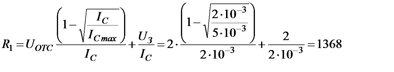 Исходные данные: Полевой транзистор с управляющим р-n переходом и каналом n-типа используется в цепи усилительного каскада, изображенного на рис. 2.13. Напряжение отсечки UОТС = 2 В. Ток стока максимальный IСmax = 5 мА. Ток стока в рабочей точке IС = 2 мА. Коэффициент усиления | КU | = 8. Напряжение Eс = 20 В. Определить: напряжение смещения затвор-исток UЗИ, крутизну транзистора в рабочей точке S, сопротивление резистора в цепи истока R1, сопротивление нагрузки в цепи стока R2, напряжение сток-исток UСИ.