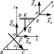 пластина – саме до неї прикладені шукані реакції опор: реакція сферичного шарніра О та циліндричної петлі B. Реакція сферичного шарніра О дорівнює: