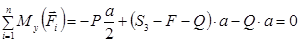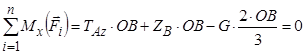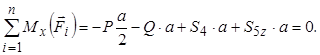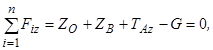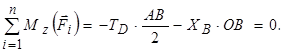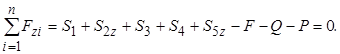 | Рівняння рівноваги системи сил і відносно осі запишеться так: