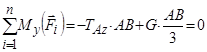 При визначенні моментів відносно осі відкидаємо силу (паралельну осі ) та сили (перетинають вісь ). Для решти сил і маємо:
