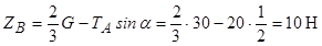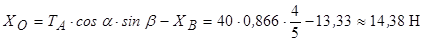 Шуканою силою є сила , тому доцільно записати лише те рівняння рівноваги, в яке увійдуть відома сила і невідома сила . Так як лінії дії реакцій підшипників і перетинають вісь , то момент цих сил відносно цієї осі дорівнює нулеві. Отже, в рівняння моментів сил відносно осі ввійдуть лише сили і .