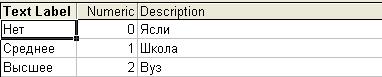 2. Сопоставить текстовым значениям Пол и Образование численные значения и метки в окне свойств переменной: