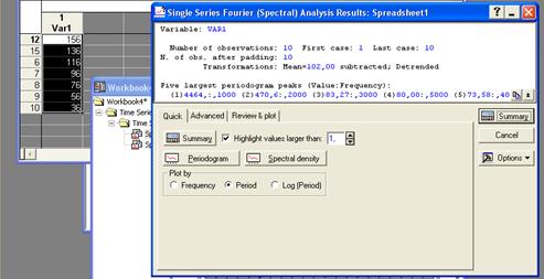 Рисунок 6. Результаты Спектрального анализа Фурье в Statistica 6.0.