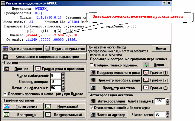 Рисунок 9. Запуск АРПСС и автокорреляционной функции.