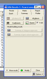 6. В окне GRM Results нажать кнопку More results (в левом нижнем углу), в результате откроется окно с расширенным набором процедур