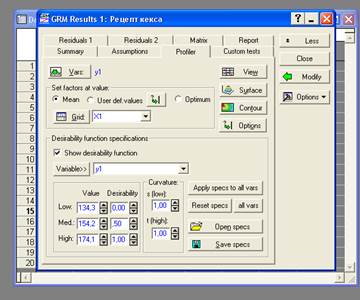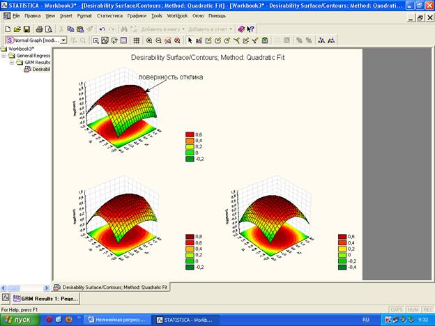 9. В окне GRM Results во вкладке Profiler отожмите кнопку Surface для построения графических интерпретаций зависимостей в виде поверхностей отклика