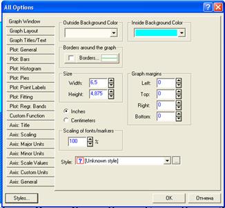 Красной непрерывной линией на рисунке показывается плотность нормального распределения случайных величин «ВОЗРАСТ» и «ДОХОД» (в пределе) 6) Изменение графических настроек: При открытом окне графика в меню Format выбираем пункт All options и изменяем настройки по своему усмотрению
