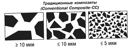 Тип неорганічного наполнителя: кварц, скло, кераміка. Склад: Органічна матриця + традиційний наполнитель. Представники: Переваги: Аdарtіс (1970) + гарні оптичні властивості; Clearfil > 10мкм + гарні фізичні властивості; Consise (1970) + досвід клінічного спостереження; + рентгеноконтрастность може бути досягнута. Estilux posterior, Rx-(L) Недоліки: Nuva-Fil - не поліруються; Profile < 10мкм - дуже груба поверхня; Simulate - сильно акумулюється Visio-Fil зубний наліт; - невисока цветостойкость; - низька износоустойчивость. Рrіма-Fil. < 5мкм L-полімеризація ініціюється світлом