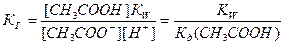 К обменным реакциям в растворах относят взаимодействие между кислотами и основаниями, в результате которых образуется соль и вода. Такие реакции называются реакциями нейтрализации и доходят до конца только тогда, когда единственным малодиссоциированным веществом в системе является вода, например: НС1 + КОН = КС1 + Н2О. Сокращенное ионное уравнение этого процесса Н++ОН–=Н2О. Оно показывает, что равновесие полностью смещено в сторону образования воды. Взаимная нейтрализация кислот и оснований, отличающихся друг от друга по силе, до конца не протекает. Так, при взаимодействии слабой уксусной кислоты с гидроксидом калия в системе из четырех веществ два слабодиссоциированы: СНзСООН + КОН ↔ Н2О + СНзСООК, или в сокращенном ионном виде СНзСООН + ОН– ↔ Н2О + СНзСОО–. Эта реакция обратима. Обратная реакция - взаимодействие соли и воды - называется реакцией гидролиза. Гидролизу подвергаются соли, образованные: 1) Слабым основанием и сильной кислотой; 2) сильным основанием и слабой кислотой; 3) слабыми основанием и кислотой. Соли, образованные сильным основанием и сильной кислотой, гидролизу не подвергаются. Приведем примеры реакций гидролиза. Гидролиз соли, образованной сильным основанием и слабой кислотой - ацетата натрия. Соль в растворе полностью диссоциирует: СНзСООNa ↔ СНзСОО– + H+. Гидролиз в ионной форме: СН3СОО-+Н2О↔ СН3СООН+ОН-. В результате гидролиза реакция среды стала основной (избыток ОН-), рН> 7. Показателем глубины протекания гидролиза является степень гидролиза β: β =Сгидр/С, где Сгидр – концентрация гидролизованных молекул, С – исходная концентрация растворенных молекул соли. Гидролиз – процесс эндотермический, поэтому, в соответствии с принципом Ле-Шателье, с повышением температуры степень гидролиза увеличивается. Принимая, что в разбавленных растворах активность ионов мало отличается от их концентрации (С=а), можно записать константу равновесия Отсюда следует, что гидролиз идет тем глубже, чем ниже константа диссоциации слабого электролита, образующегося при гидролизе.