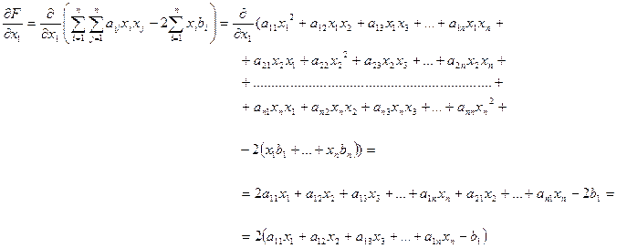 Теорема 4. Если в некоторой точке n -мерного векторного пространства многочлен (11) имеет минимум, то координаты этой точки являются решением СЛАУ (1).