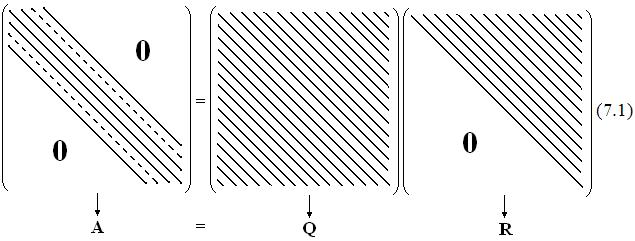 Необходимо отметить, что QR, QL-алгоритмы в общем случае сохраняют ширину ленты исходной матрицы. Для определенности рассмотрим далее QR-алгоритм. Пусть для ненулевой ленточной