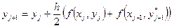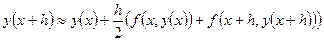 т.е. получили формулу Ейлера. Для получения более точного приближения необходимо в правой части (5) использовать более точную формулу численного интегрирования. Воспользуемся, например, квадратурной формулой трапеции: