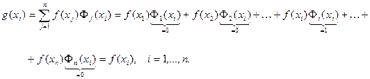 будет искомым интерполяционным многочленом. Действительно, поскольку в соответствии с (140) – сумма многочленов степени , то и - многочлен степени . Проверим выполнения условия интерполяции: