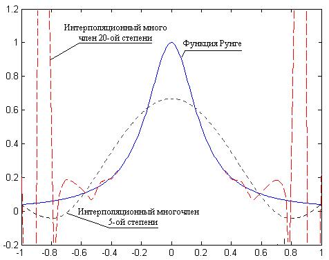 Подробный анализ опасностей, возникающих при полиномиальной интерполяции, был впервые опубликован Рунге в 1901 г. Он пытался интерполировать полиномами простую функцию
