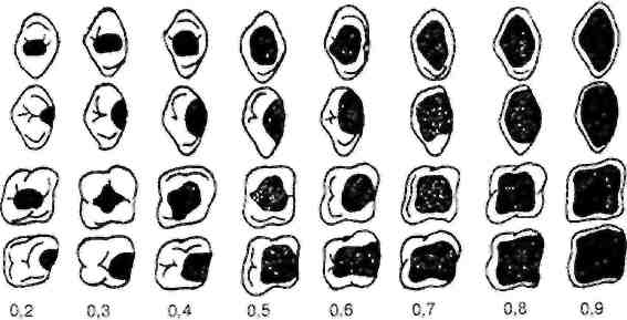Мал. 40. Індекс руйнування оклюзійної поверхні зубів (ІРОПЗ) за