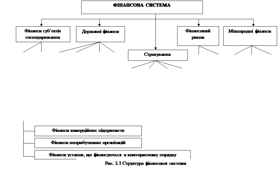 Внутрішню структуру фінансової системи відображено на рис. 2.1 В основу виділення сфер покладено рівень економічної системи: