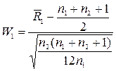 Показник близькості двох вибірок за критерієм Вілкоксона визначимо як відношення різниці середнього значення суми рангів та її математичного сподівання до квадратного кореня з дисперсії: