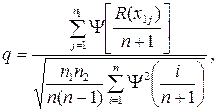 Показник близькості двох вибірок за критерієм Ван-дер-Вардена має вигляд
