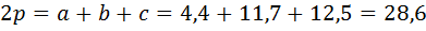 Ответ: 0, 325; 25, 74. Пример 2. В условиях предыдущей задачи найти периметр треугольника и радиус вписанной в него окружности. Решение: имеем