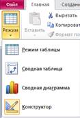 Тема. Система управління базами даних MS Access. Робота із структурою таблиці та даними бази даних. Обробка даних БД. Мета: навчити студентів створювати таблиці бази даних у різних режимах, вводити та редагувати дані таблиць, користуватися додатковими можливостями (імпортом таблиць) для введення інформації у БД. Контрольні запитання 1. Дати визначення поняттю «база даних». 2. Дати визначення поняттю «система управління базами даних». 3. Які моделі баз даних Вам відомі? Наведіть приклади реляційних баз даних. 4. Дайте визначення структури БД. 5. Перерахуйте режими створення таблиць БД в Access. 6. Що таке поле БД? Що таке запис БД? 7. Перерахуйте типи полів БД. 8. ПОРЯДОК ВИКОНАННЯ РОБОТИ: 1. Створити базу даних Україна_Ваше_прізвище.accdb та зберегти у власній папці. 2. Створити структуру таблиці Області1 у режимі Конструктора таблиць: вкладка Создание/група Таблицы/Конструктор таблиц 3. Додати наступні поля, їх типи та властивості: