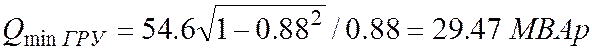 Определяем минимальную реактивную мощность потребителя на ГРУ:
