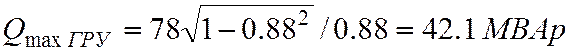 Выбираем трансформаторы ТДТН-63000/110. 1) 2) 3) 4) Выбранные трансформаторы проверяем в двух режимах работы: 1) аварийное отключение одного из параллельно работающих трансформаторов, 40%-ый перегруз оставшегося в работе: Определяем максимальную реактивную мощность потребителя на ГРУ: