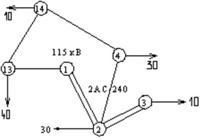 Определяем мощности в начале линии с учетом потерь в линии и зарядной мощности линий. Рассматриваем кольцо 1-2-4-14-13-1, учитывая, что узел 4 – точка потокораздела. 4-2