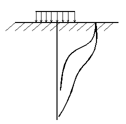 где 2β – угол, под которым видны края полосы из т. М (угол видимости). Большее напряжение Из формулы (3.4) очевиден вид изолиний главных напряжений: это окружности с центром на оси z, проходящие через т. М и края полосы. Во всех точках 2β = const, поскольку угол опирается на одну и ту же хорду – загруженную полосу шириной b. Напряженное состояние в любой точке удобно характеризовать эллипсом напряжений (см. рис. 3.4). Если сравнить изменение напряжений с глубиной от одинаковой нагрузки р, действующей на квадратной или круговой площадке и на полосе той же ширины, то обнаруживается более медленное затухание (убывание) напряжений от полосовой нагрузки (рис. 3.4). Учет этого фактора особенно важен, если на некоторой глубине в основании оказывается прослоек слабого грунта.