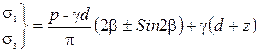 Подставив (4.1) в УПР (2.16), получаем выражение, связывающее нагрузку р с координатами рассматриваемой т. М β, z, глубиной заложения d, характеристиками грунта γ, φ, с, т.е.