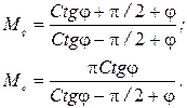 Если в т. М выполняется УПР, то площадки сдвига совпадут с лучами из точки к краям подошвы и тогда Р1кр = Мq · γ · d +Mc · C, (4.3) где Мq и Mc – функции угла внутреннего трения, определяемые соотношениями: