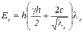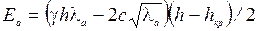 Рассмотрим учет сцепления грунта при определении активного давления. Ранее было установлено, что на высоту hкр по (4.11) связный грунт держит вертикальный откос. Считаем, что до этой глубины грунт не оказывает давления на стенку. Таким образом, эпюра начнется в точке на глубине hкр от верха стенки (рис. 4.9b). Нижняя ордината эпюры определится из УПР (2.16)