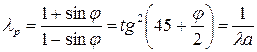 С помощью выражения (4.18) построены эпюры пассивного давления (рис. 4.10): а – при с=0, q=0; б – при с=0, q≠ 0; b – при q=0, с≠ 0. Для получения формул равнодействующих пассивного давления достаточно записать площади эпюр. Очевидно, для случаев а и б справедливы формулы (4.15) и (4.16) с заменой λ а на λ р по (4.19). Для грунта со сцеплением эпюра пассивного давления трапецеидальная, т.е. здесь учет сцепления увеличивает давление: