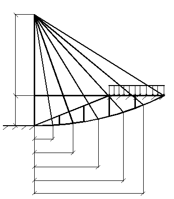 Силы Qi считаем приложенными в точках поверхности скольжения под центрами тяжести отсеков, т.е. в точках с абсциссами: x01=1, 67 м; x02=3, 75 м; x03=6, 25 м; x04=8, 5 м; x05=10, 1 м.