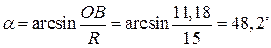 6. Определяем центральные углы α i между вертикалью и радиусом в точку приложения веса отсека: Получаем: 7. Центральный угол, соответствующий дуге DB, равен Длина дуги кривой скольжения определяется из соотношения: