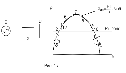 Критерий устойчивости простейшей электрической системы, режим которой зависит только от изменений угла, имеет вид dP∑ /dδ < 0 или при Рт=const dP∑ /dδ > 0