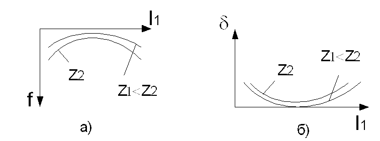 В основу векторной диаграммы положен вектор приведенного вторичного тока I ¢ 2, направленный по вертикальной оси. Векторы I ¢ 2R¢ и j I ¢ 2Х¢ представляют собой падения напряжения от вторичного тока I ¢ 2 в активном и индуктивном сопротивлениях внешней цепи, U ¢ 2- напряжение у зажимов вторичной обмотки. Добавляя к вектору напряжения U ¢ 2 векторы падений напряжения в активном и индуктивном сопротивлениях вторичной обмотки, получаем вектор вторичной ЭДС Е ¢ 2. Последняя наводится магнитным потоком Ф, сдвинутым по фазе на 90° и образуемым в результате совместного действия МДС первичной обмотки F 1= I 1w1 и МДС вторичной обмотки F 2= I 2w2. Результирующая МДС F 0, равная I 0w1, может быть представлена как разность F 0 = F 1- F 2 или I 0w1= I 1w1- I 2w2= I 1w1- I¢ 2w1, откуда I 1= I¢ 2+ I 0. Ток намагничивания I 0 сдвинут по фазе относительно магнитного потока на угол y, определяемый потерями мощности от вихревых токов и перемагничивания. Харак-ки погр-тей тр-ра тока Зависимость погр-тей от первичного тока. Кривые токовой и угловой погр-ти имеют U-образную форму. Наименьшие погр-ти получ-ся при первичном токе, соответствующем максимуму магнитной проницаемости, при индукции (амплитудное значение) 0, 6-0, 8 Тл. Т.к. индукция, соответствующая номинальному первичному току, меньше этих значений, то наименьшие погр-ти имеют место при первичном токе, превышающем номинальный в несколько раз. Зависимость погр-й от нагрузки. Наименьшие погр-ти имеют место при замкнутой накоротко вторичной обмотке (Z=0). При включении приборов нагрузка увелич-ся, что ведет к возрастанию ЭДС и, следовательно индукции и тока намагничив-я. В пределе при размыкании вторичной цепи результирующая МДС становится равной МДС первичной обмотки, т.е. она резко увелич-ся. Магнитная индукция, а вместе с ней и потери мощности в магнитопроводе возрастает по сравнению с их нормальными значеничми.