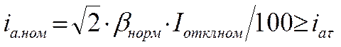 Выбор выключателей производиться по важнейшим параметрам: – напряжению: – длительному току: – отключающей способности. В первую очередь производится проверка на симметричный ток отключения по условию: Затем проверяется возможность отключения апериодической составляющей тока КЗ: где где Если условие