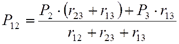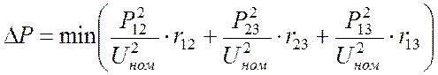 где λ 1, λ 2 – множители Лагранжа. Задача на условный экстремум (11) (12) с тремя переменными Р12, Р23, Р13 сведена к определению безусловного (минимума) функции Лагранжа (13), которая зависит от пяти переменных: трех потоков мощности и двух множителей Лагранжа. Минимум функции Лагранжа соответствует решению исходной задачи и определения равенства нулю пяти частных производных: