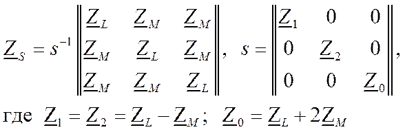 где матрица сопротивления участка линии в системе симметричных координат Zs определяется по матрице сопротивлений в фазных координатах ZLM таким выражением: